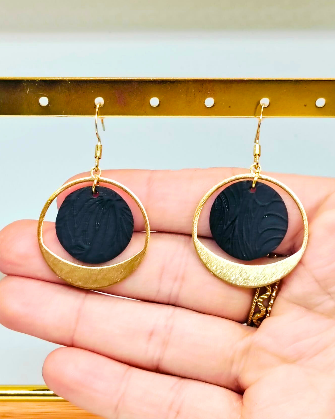 Fondez pour le modèle Alexiane et son élégant mélange de doré et de noir mat.