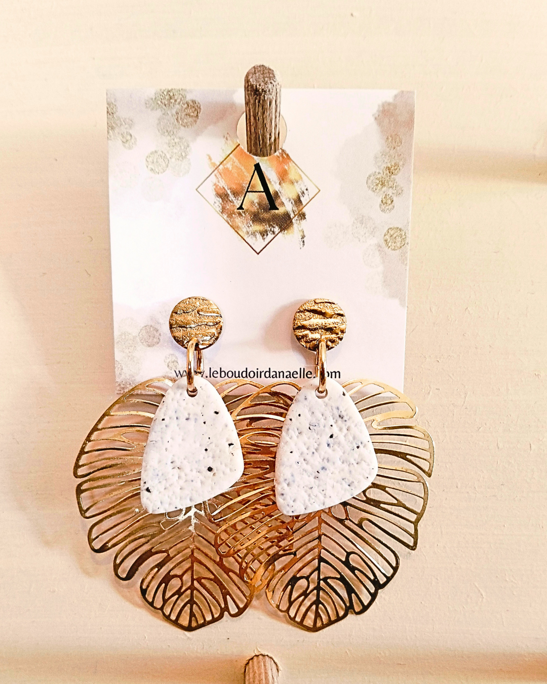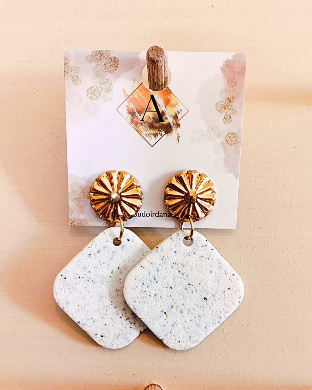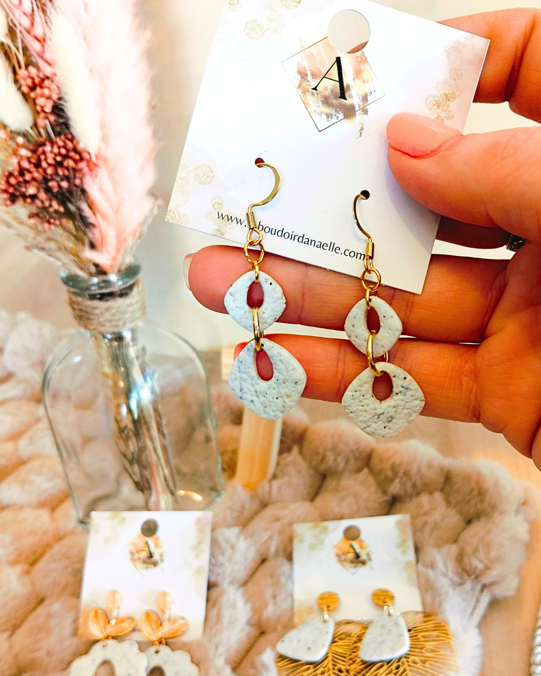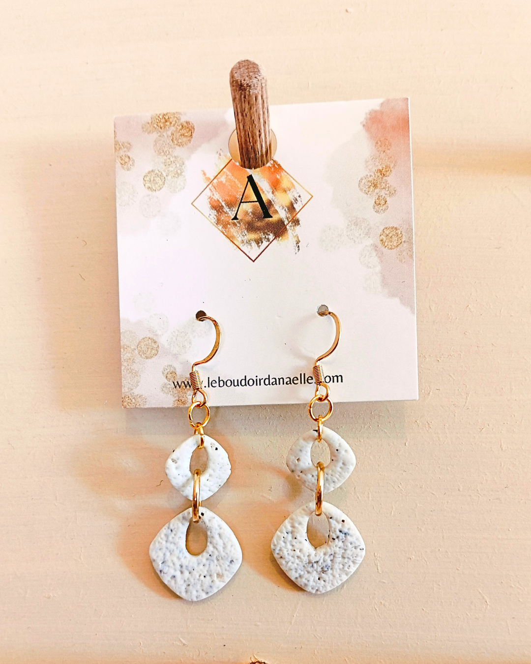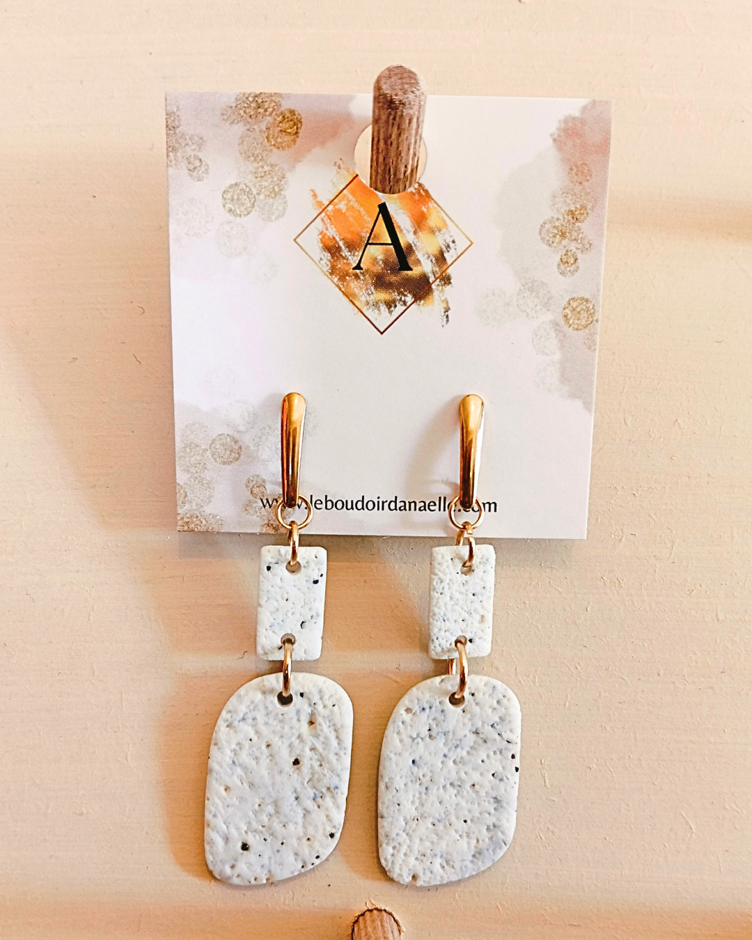 Boucles d’oreilles Angèle : blanc et éclat de noir, mat et effet pierre