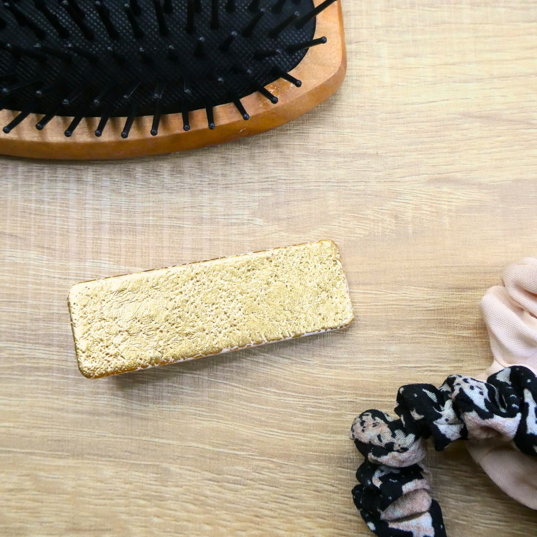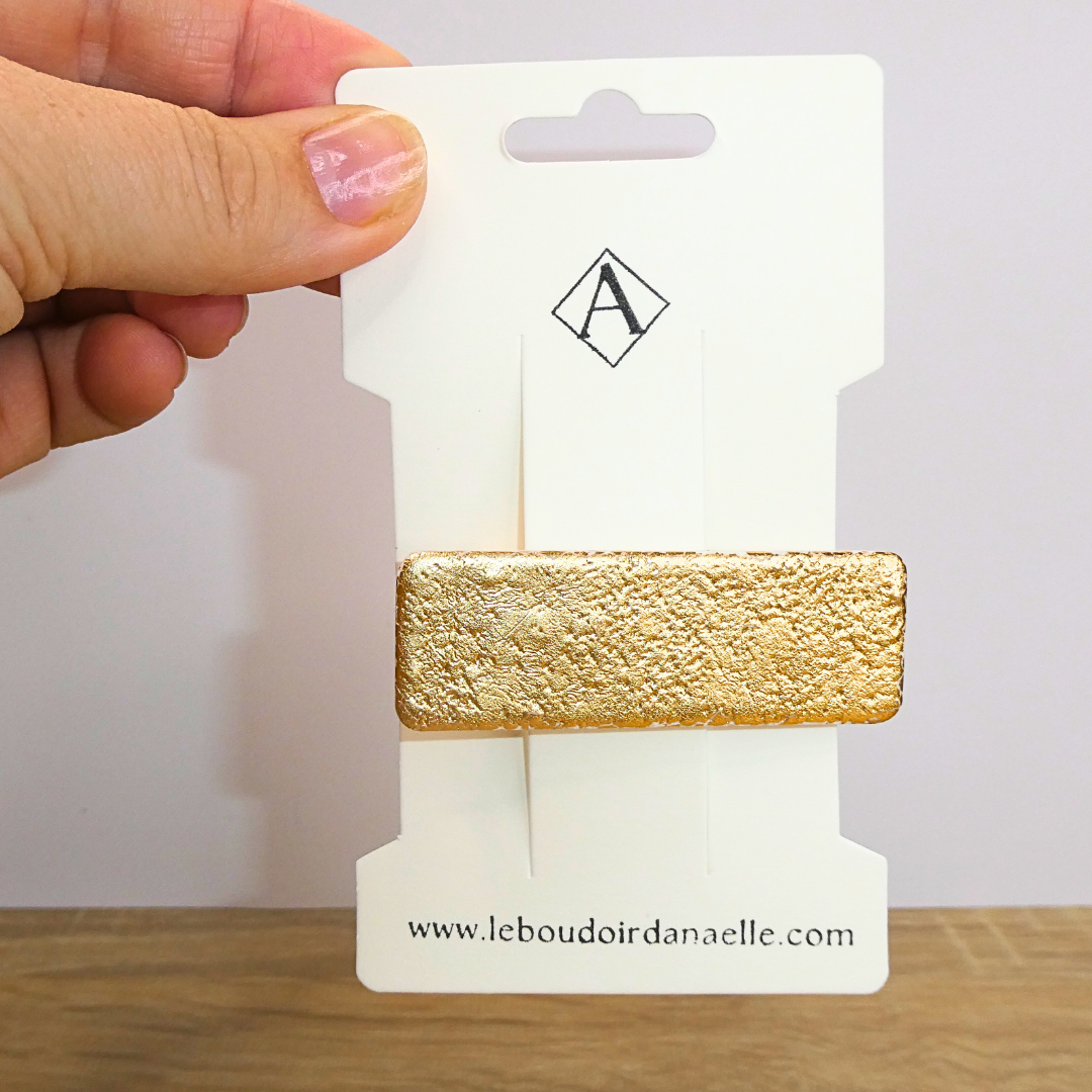 Barrette artisanale en pâte polymère avec feuille d’or : Élégance et luxe pour sublimer vos coiffures