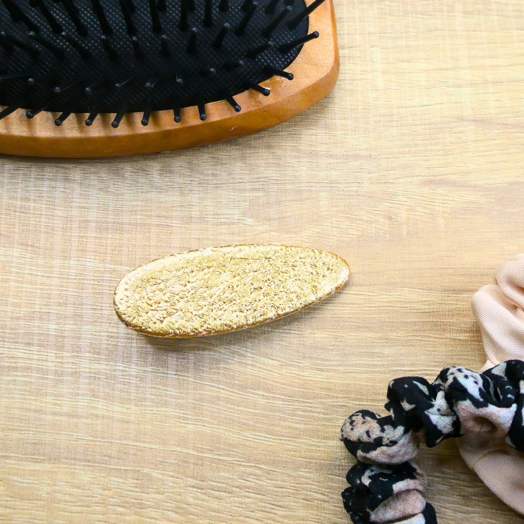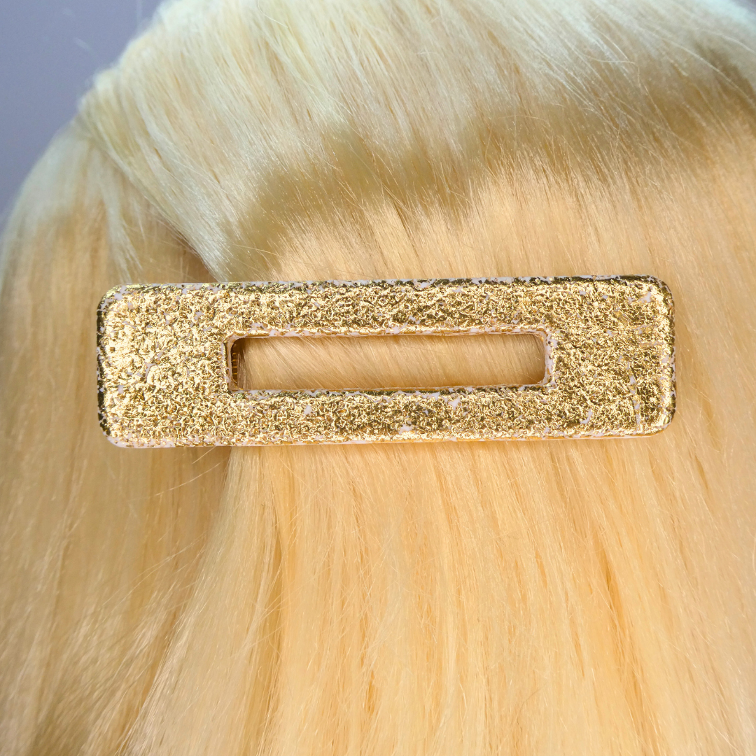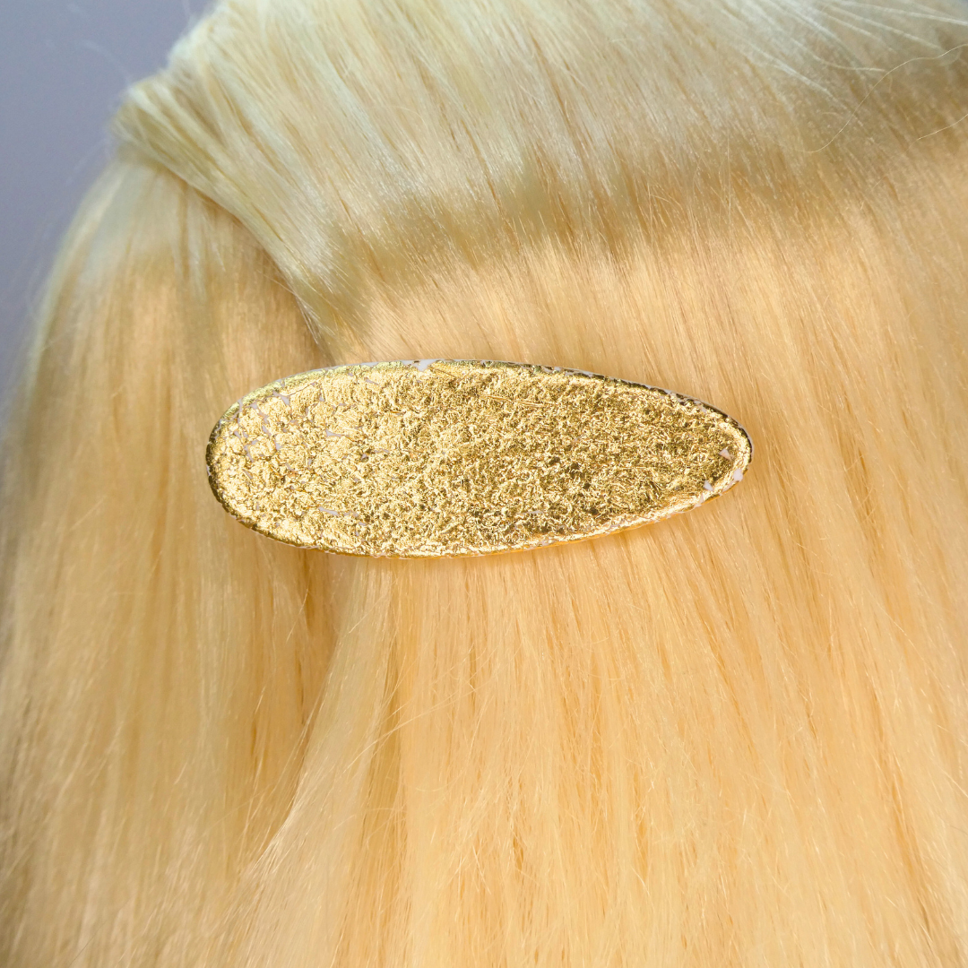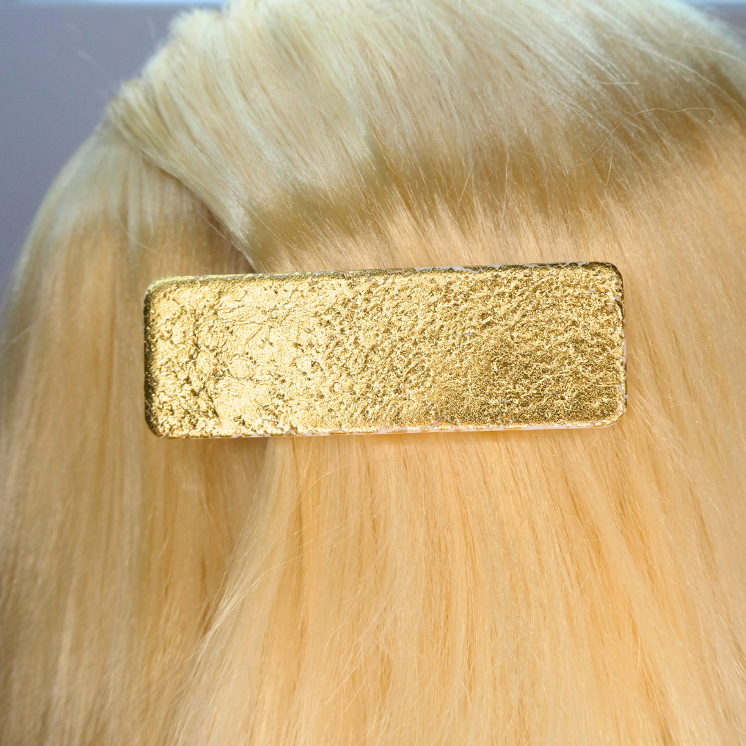 - Feuille d’or authentique: Notre barrette est délicatement recouverte d’une feuille d’or véritable, ajoutant une touche de luxe et de sophistication à votre coiffure.