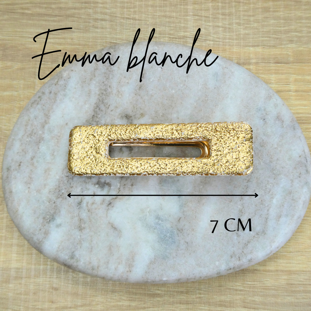 Exprimez votre style et votre sophistication avec notre barrette artisanale en pâte polymère avec feuille d’or. Fabriquée avec passion et précision, elle est l’accessoire parfait pour celles et ceux qui recherchent à la fois originalité et luxe. Découvrez notre collection dès maintenant et laissez-vous séduire par l’éclat de l’artisanat haut de gamme.