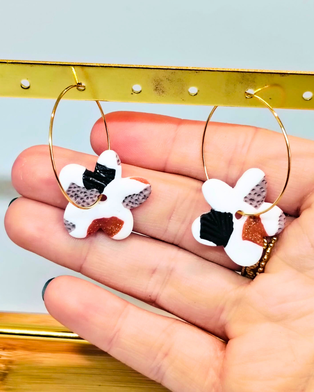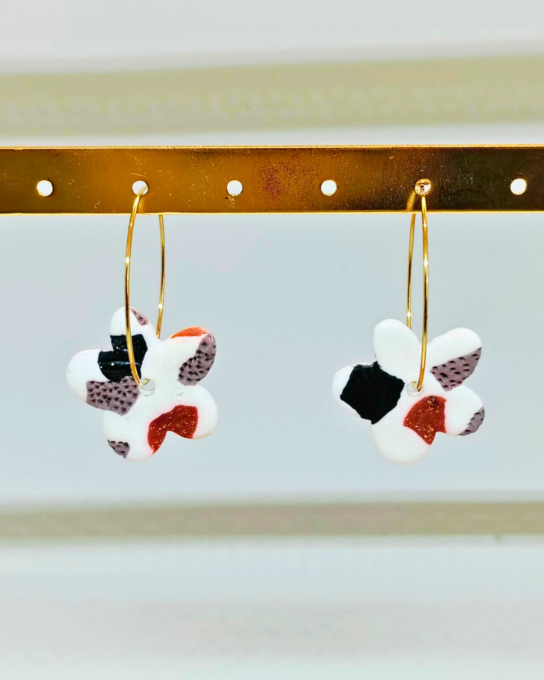 Envie de fleurs ? Voici les créoles Sofia et leurs pendentifs colorés.