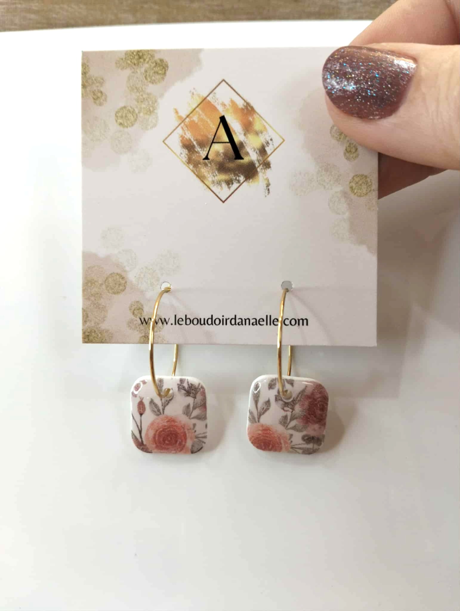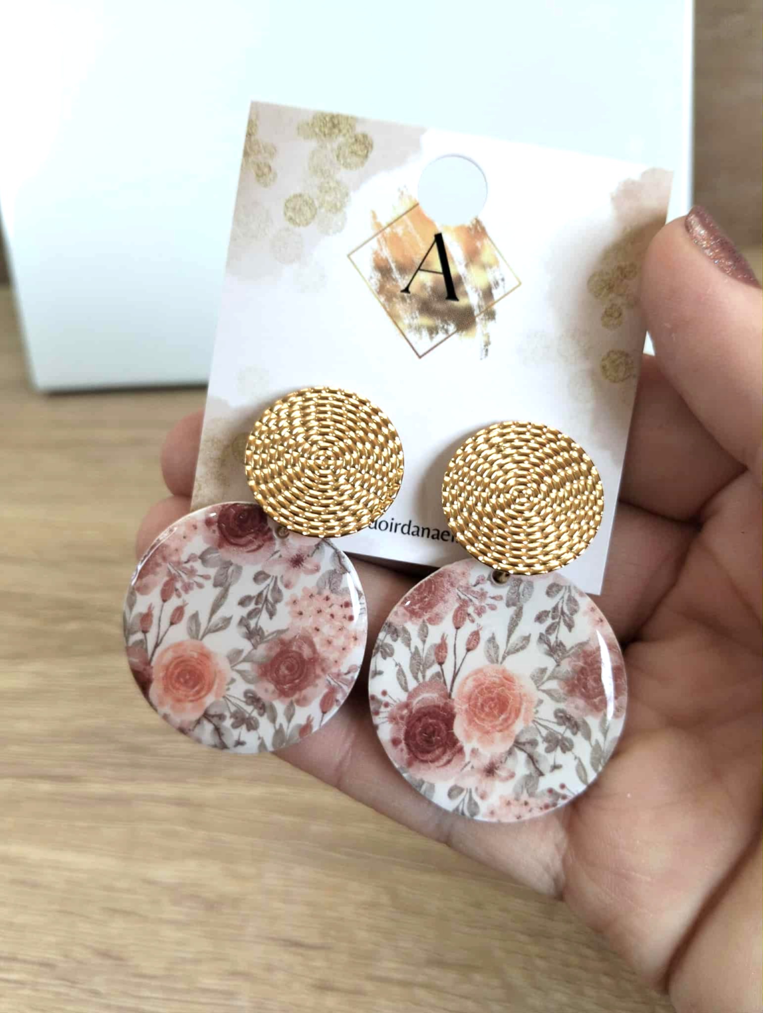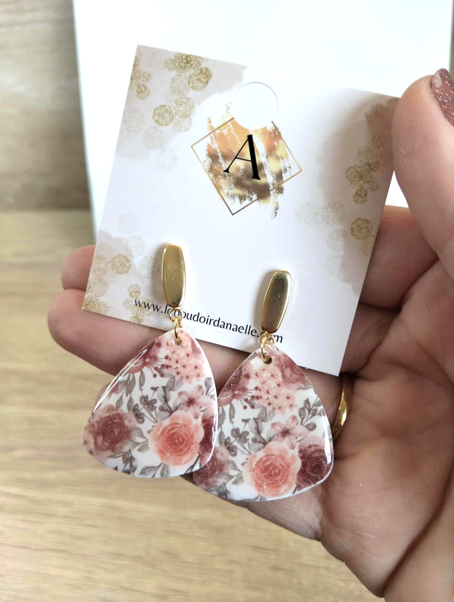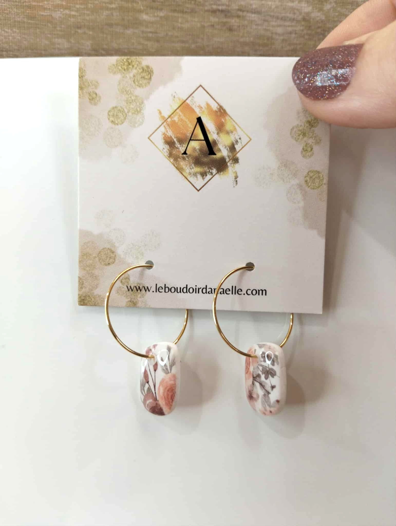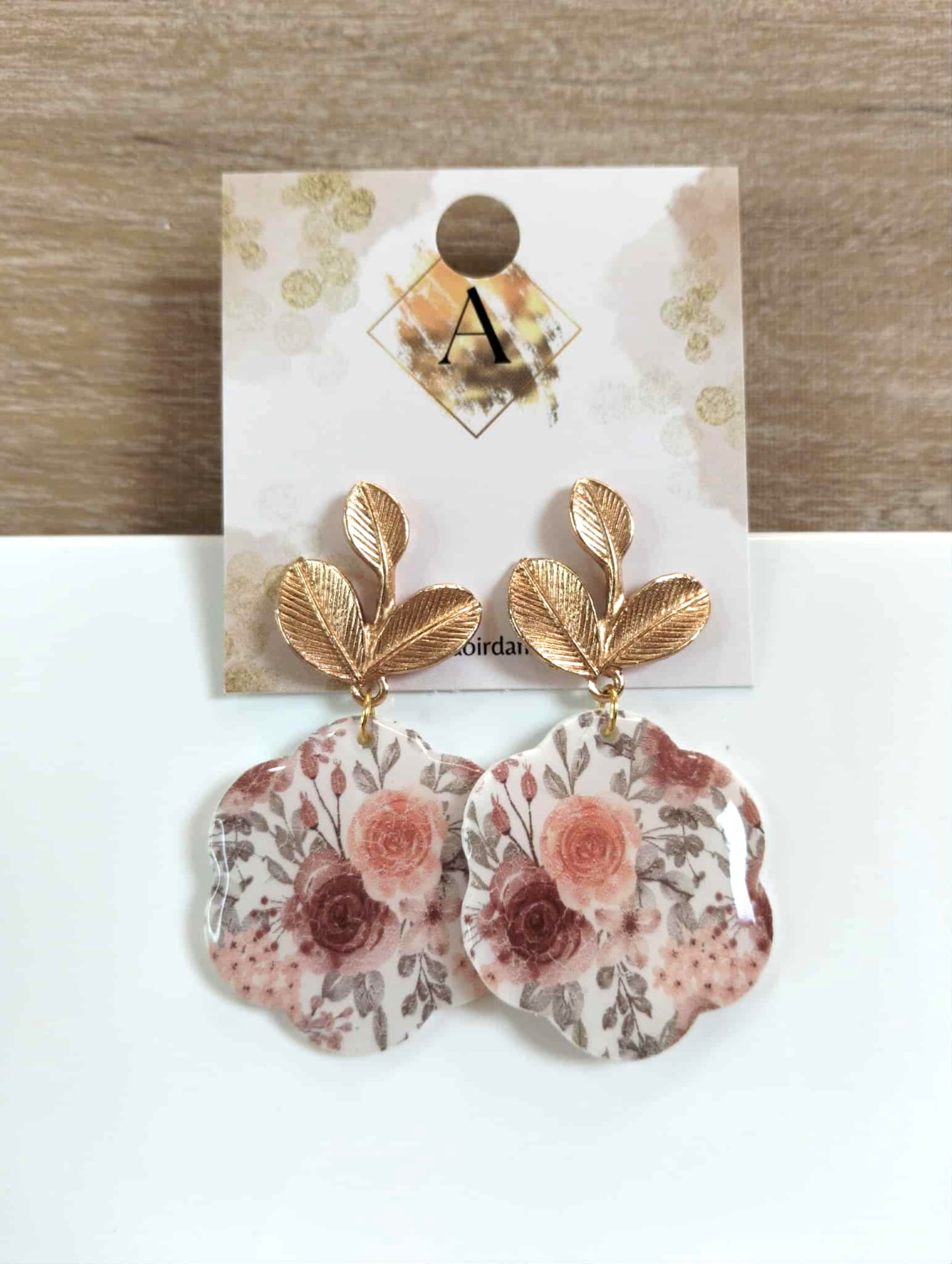 Laissez-vous séduire par l’élégance intemporelle et la délicatesse florale de cette collection unique de boucles d’oreilles artisanales, façonnées et assemblées à la main dans l’atelier Le Boudoir d’Anaëlle. Ces créations en pâte polymère mettent à l’honneur des motifs fleuris romantiques, dans des nuances de rose poudré, bordeaux et touches dorées, qui évoquent la douceur d’un jardin en fleurs.