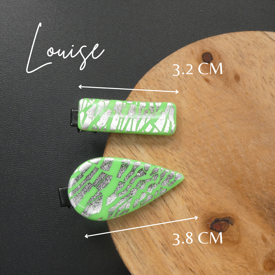 Chaque barrette est méticuleusement façonnée à la main avec passion et nous apportons une attention particulière à chaque détail. La pâte polymère, malléable et versatile, est sculptée avec précision pour créer des formes élégantes et des motifs uniques, reflétant ainsi une créativité sans bornes. Chaque courbe, chaque contour est soigneusement travaillé pour obtenir un résultat final impeccable.