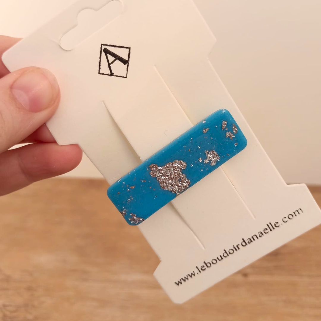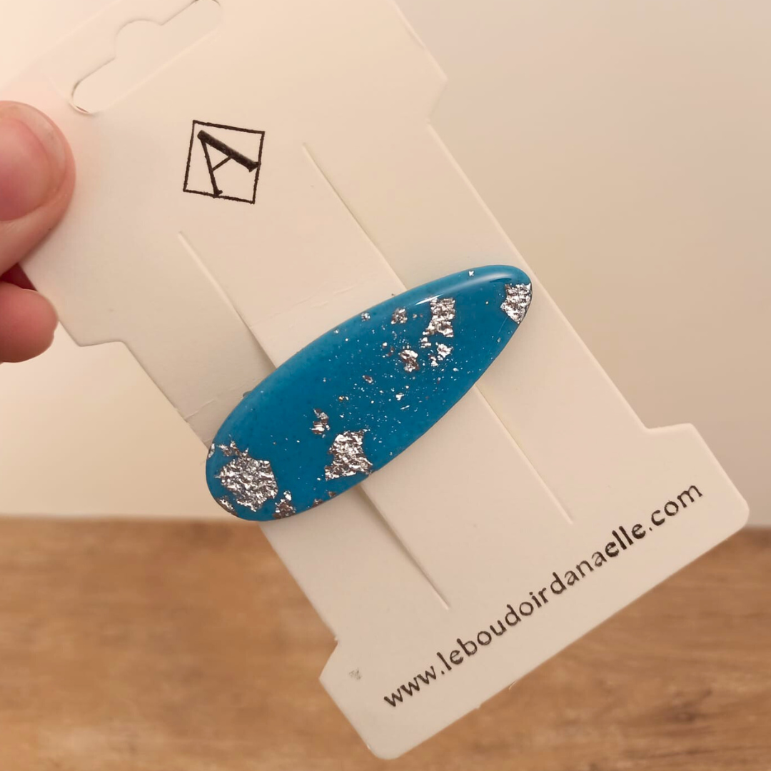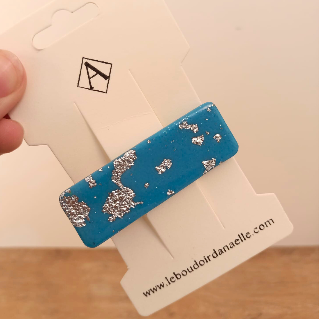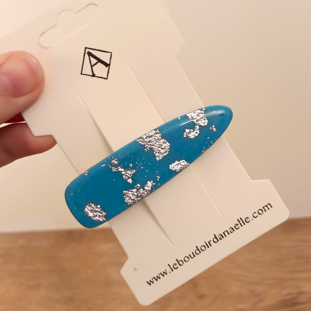 Pourquoi choisir notre barrette artisanale en pâte polymère bleue et argentée ?