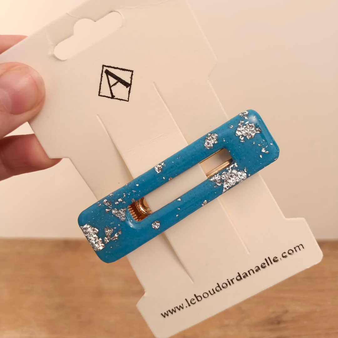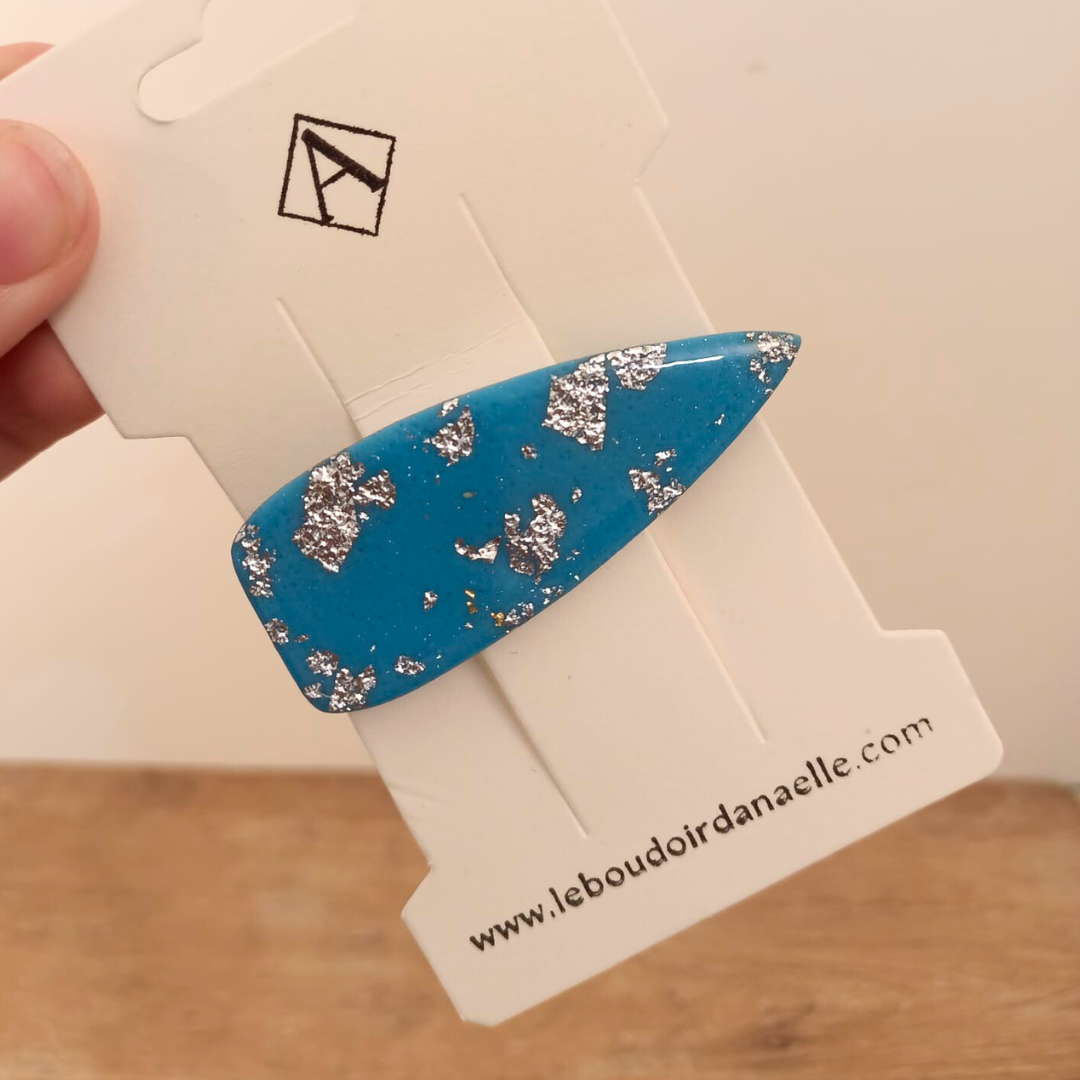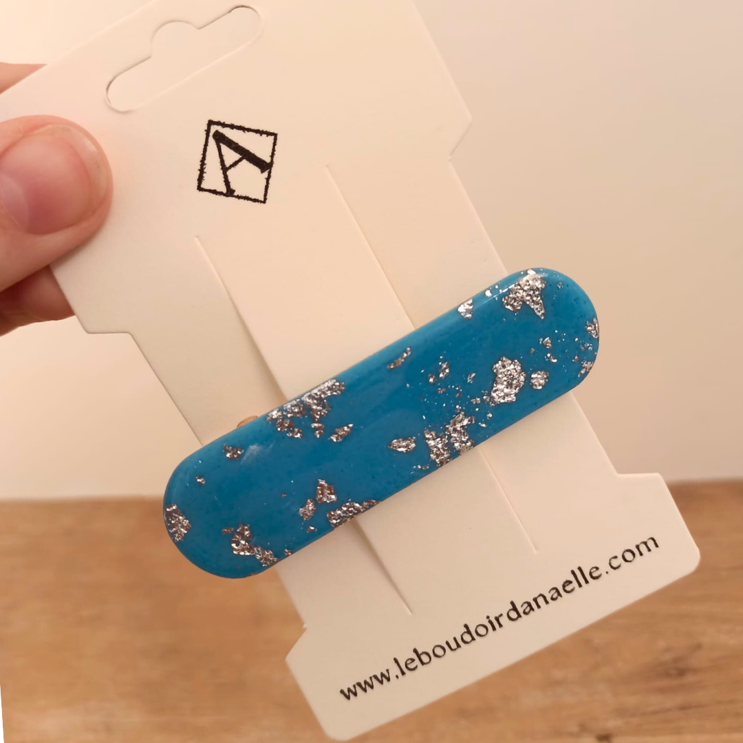 Pourquoi choisir notre barrette artisanale en pâte polymère bleue et argentée ?