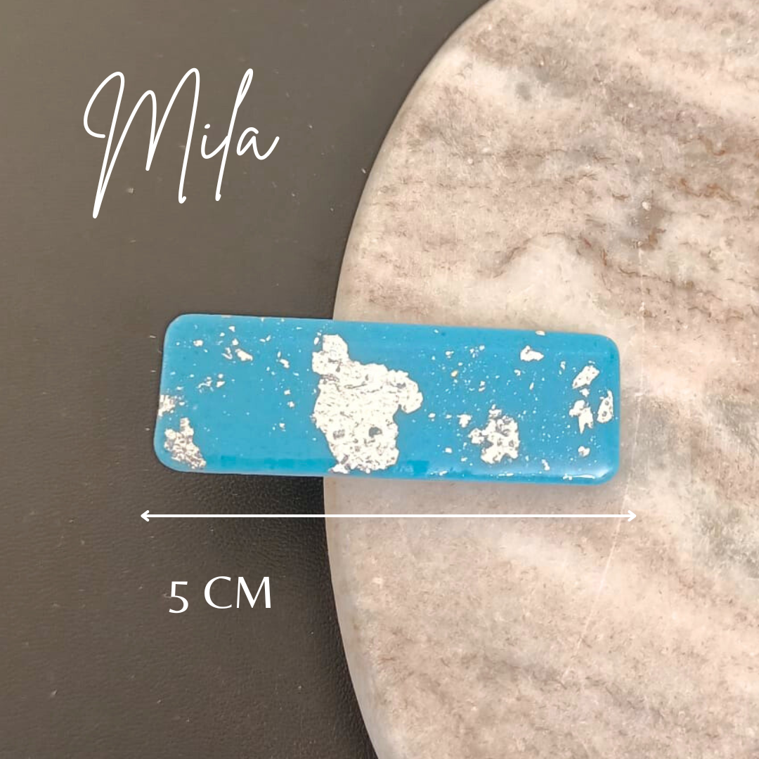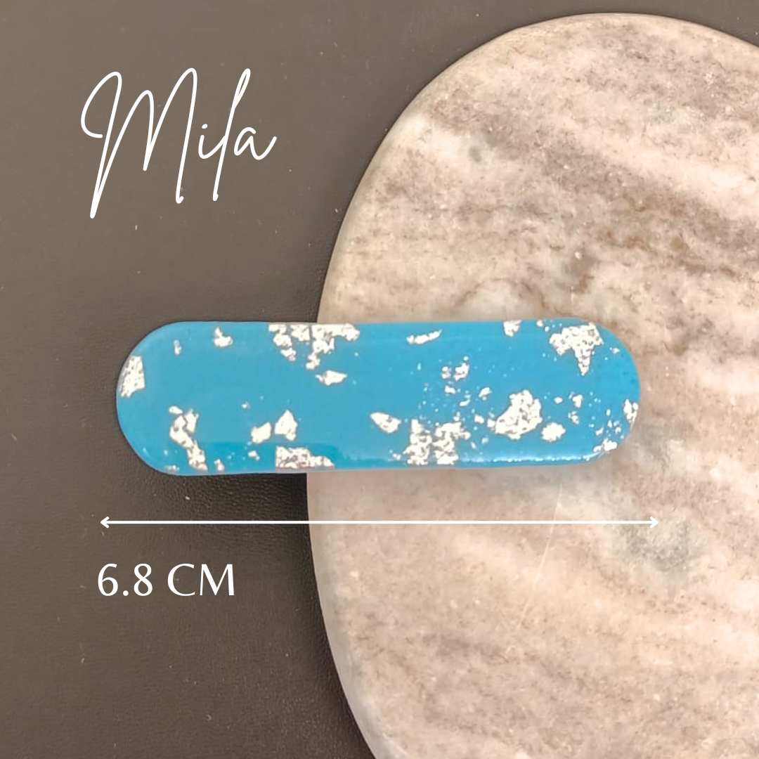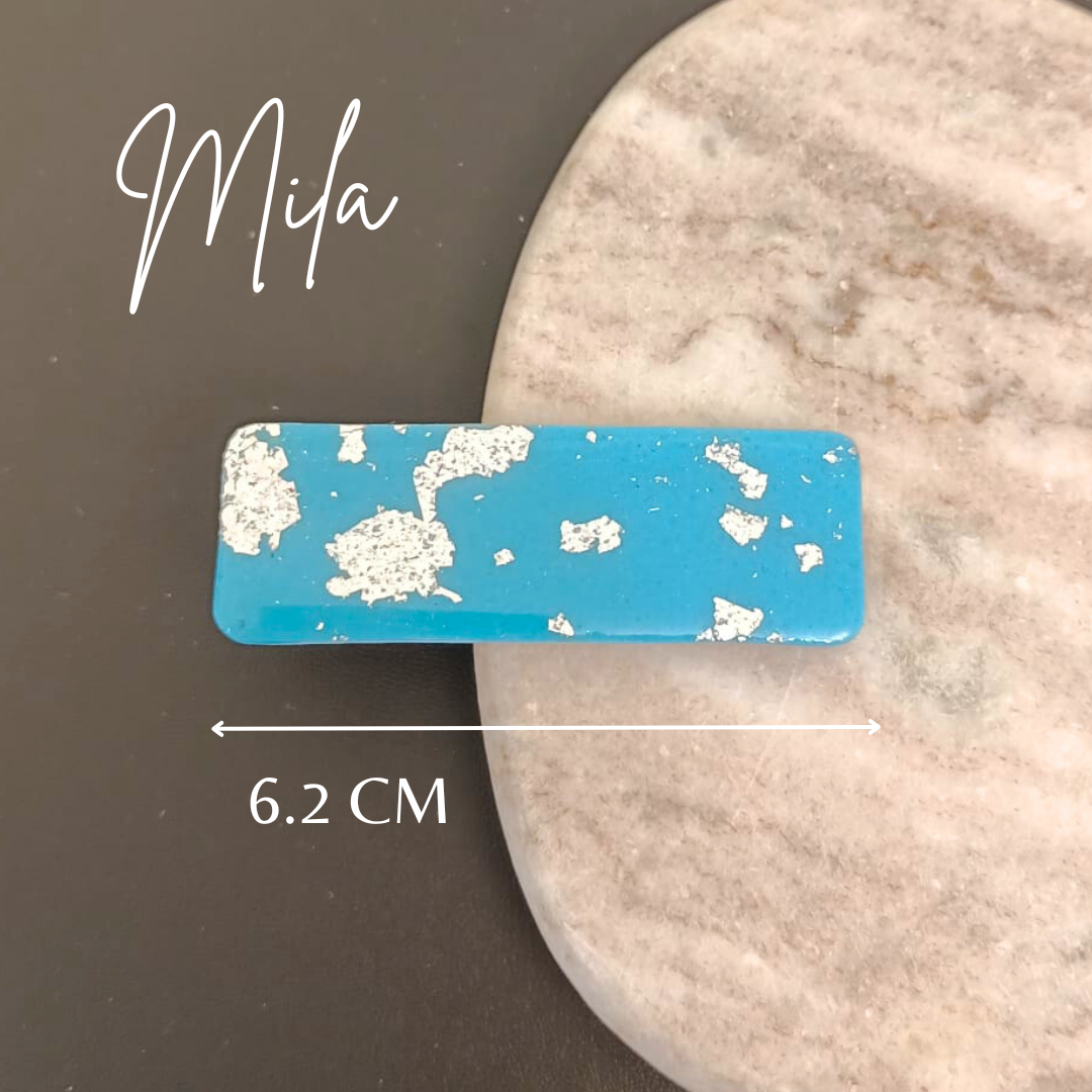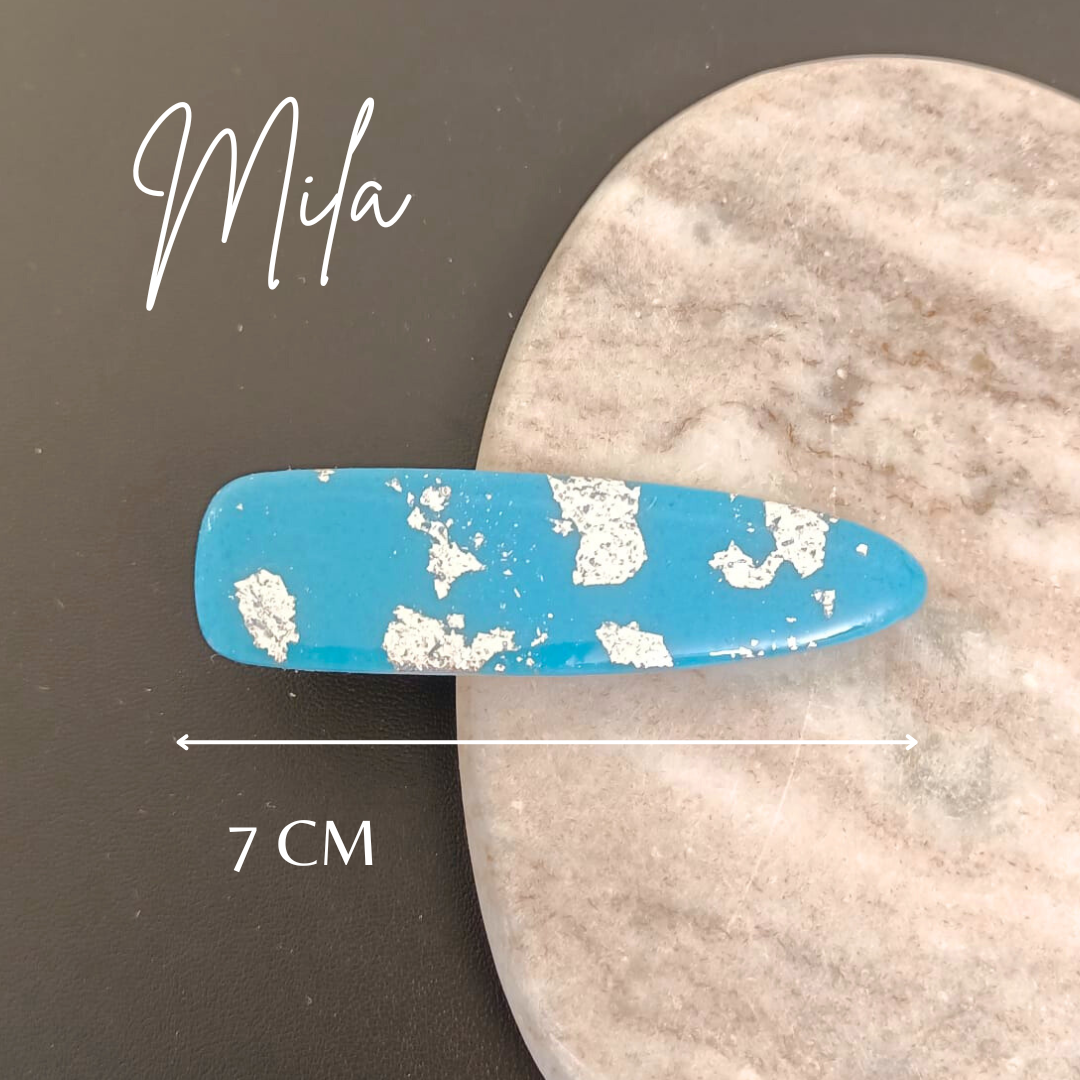 Pourquoi choisir notre barrette artisanale en pâte polymère bleue et argentée ?