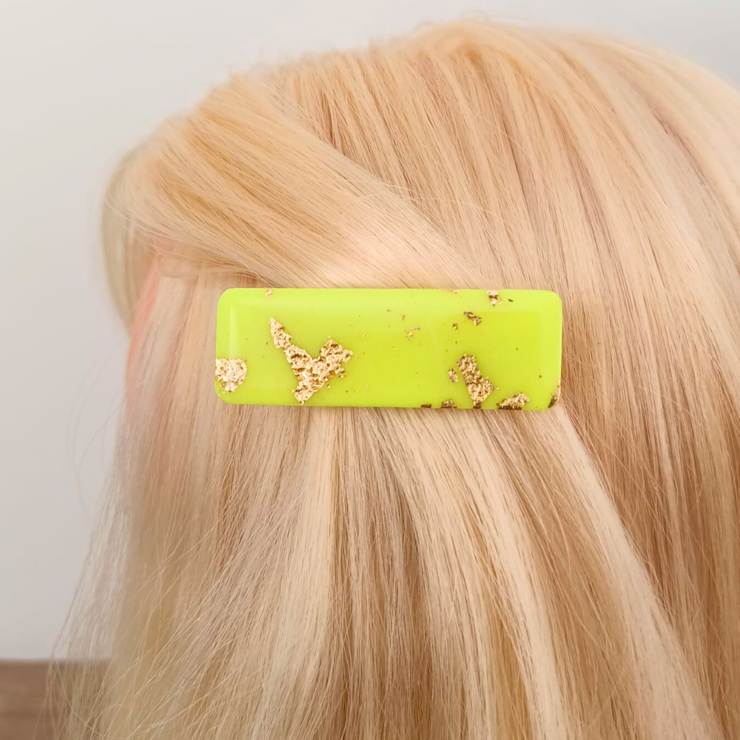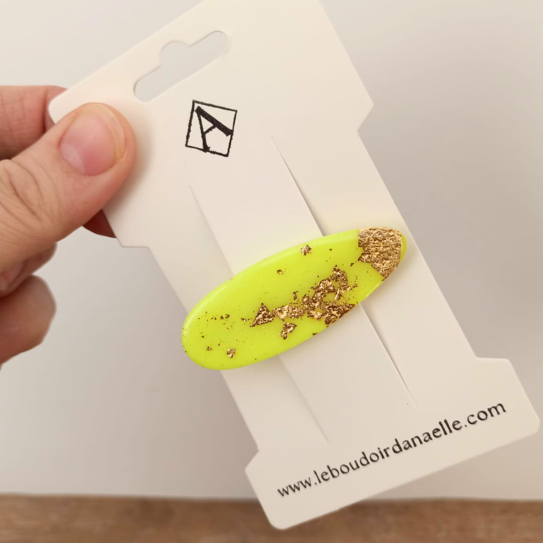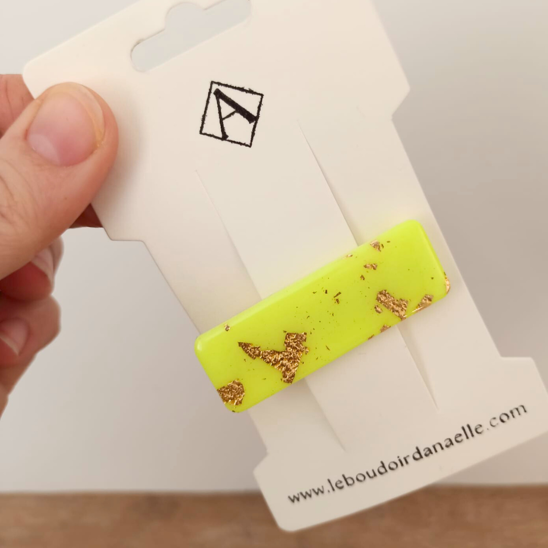Barrette artisanale en pâte polymère jaune et doré : Éclat et style pour vos coiffures