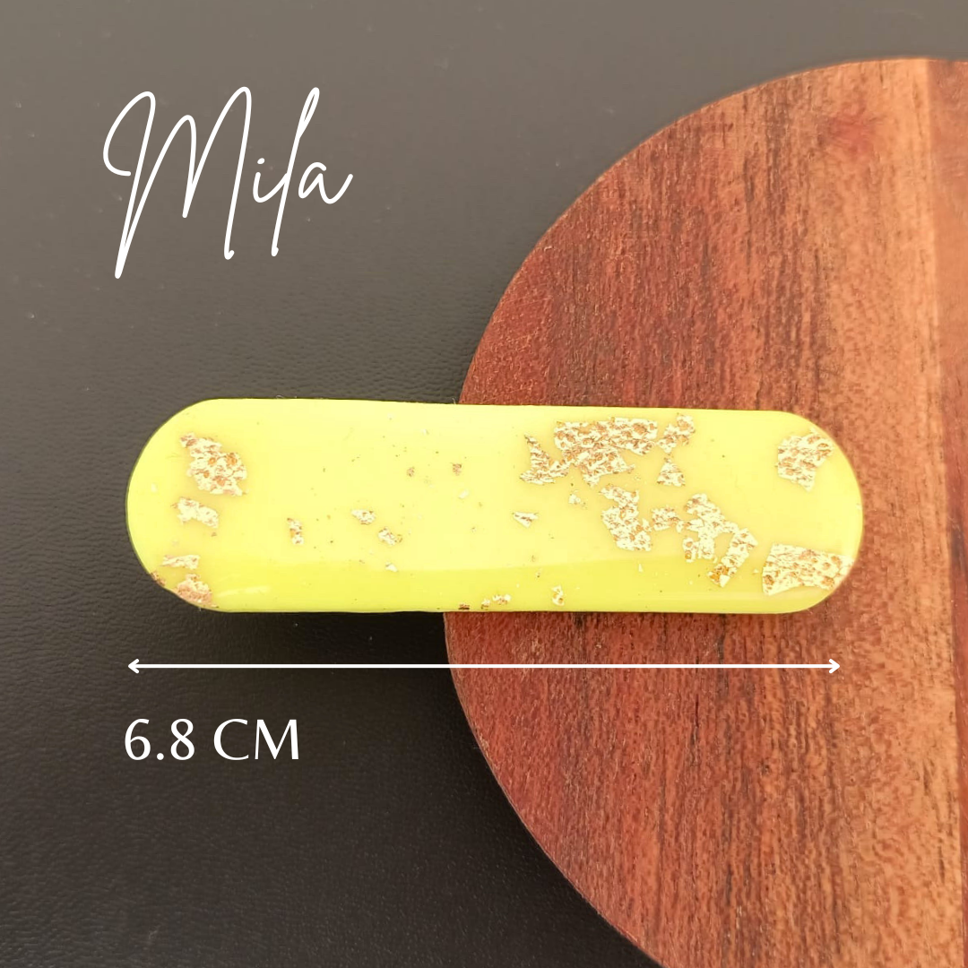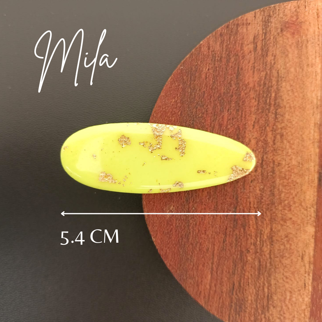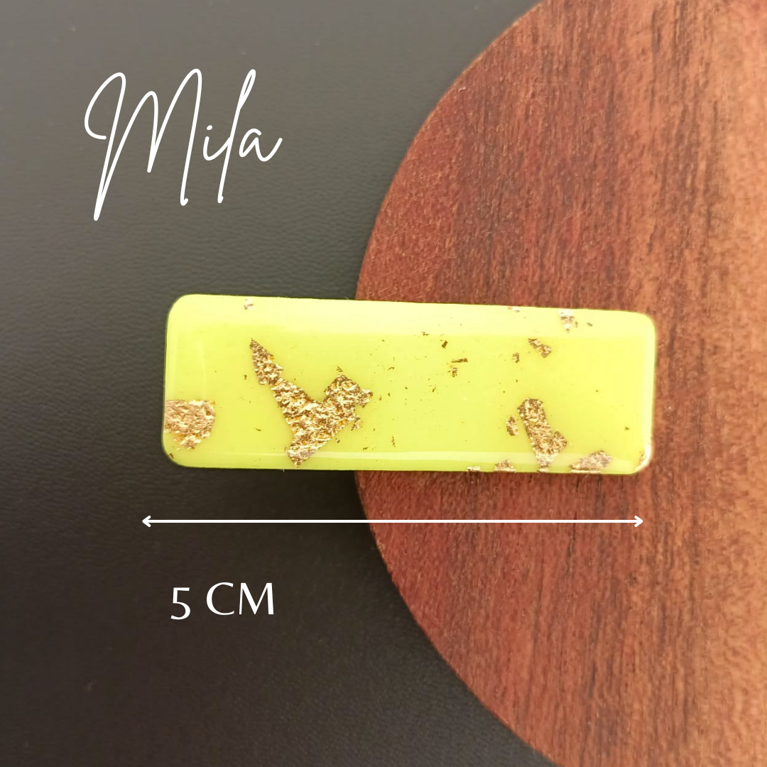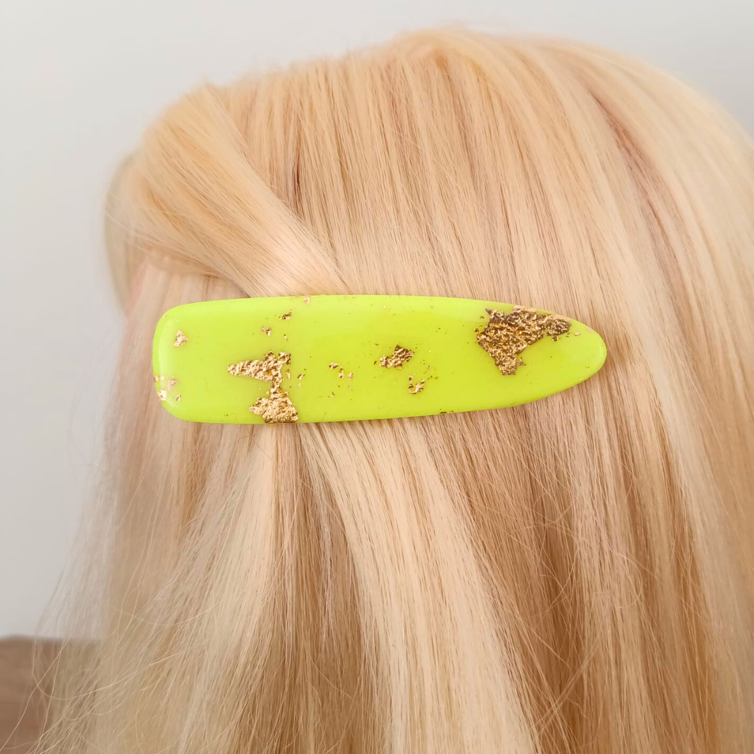 Barrette artisanale en pâte polymère jaune et doré : Éclat et style pour vos coiffures