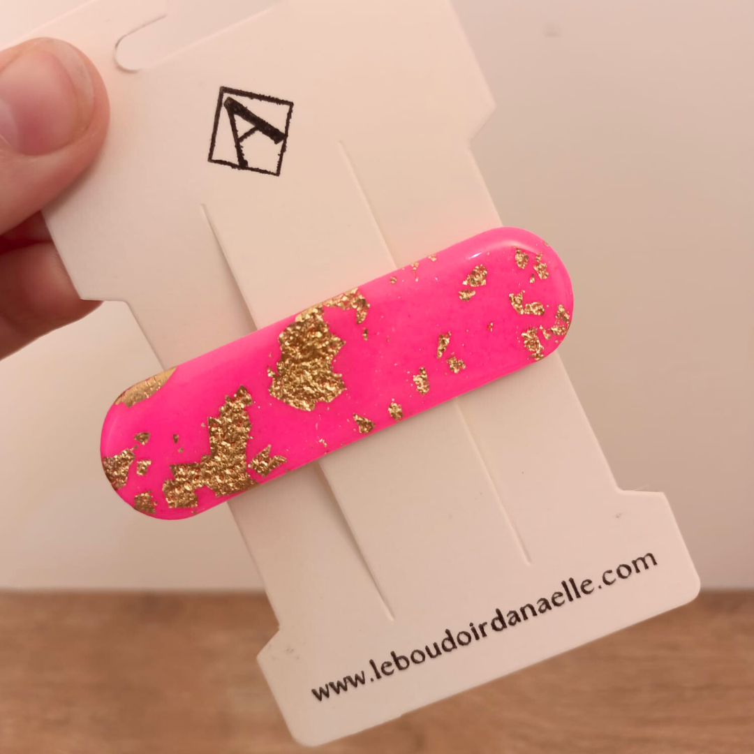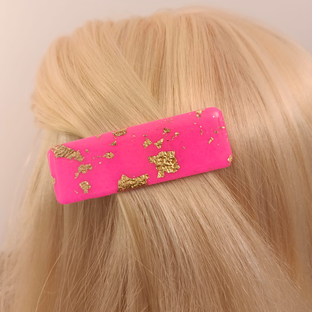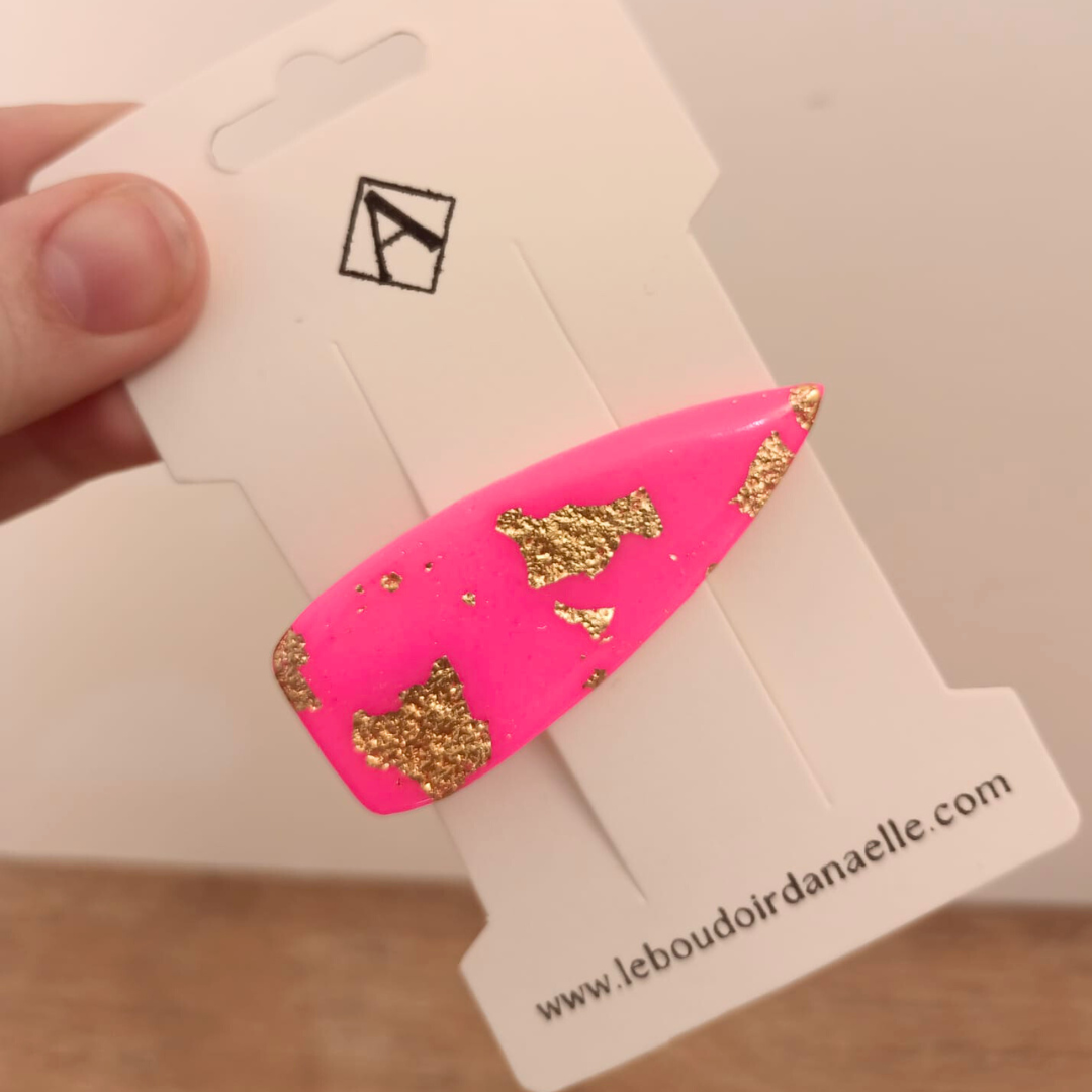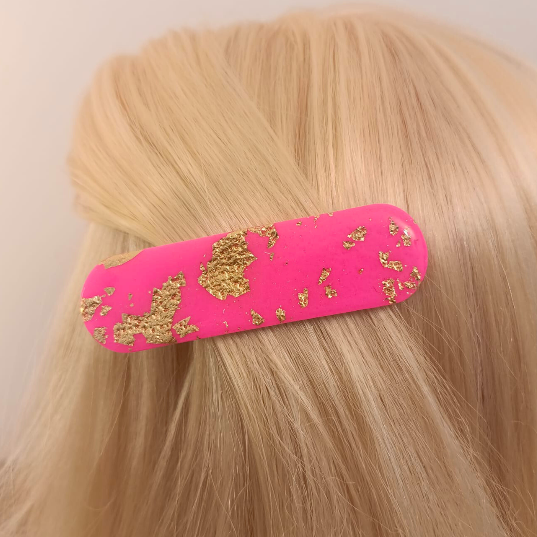 Barrette artisanale en pâte polymère rose et doré : Éclat et style pour vos coiffures