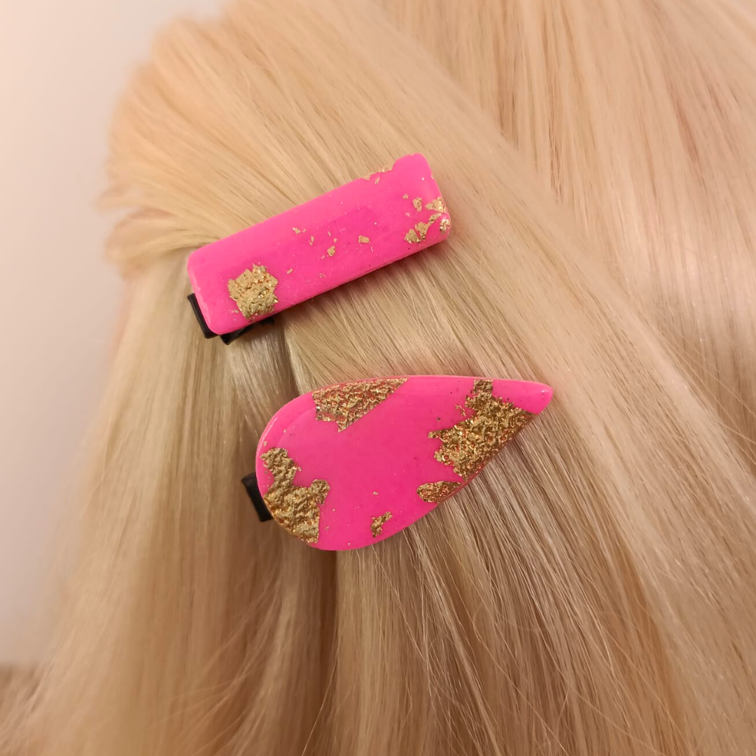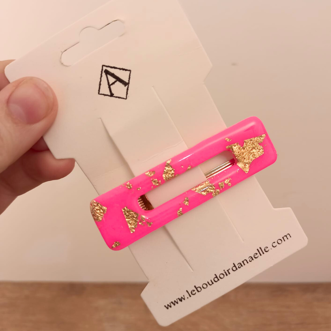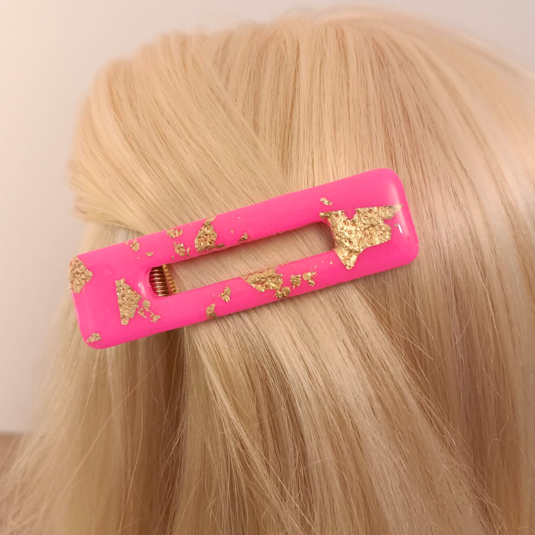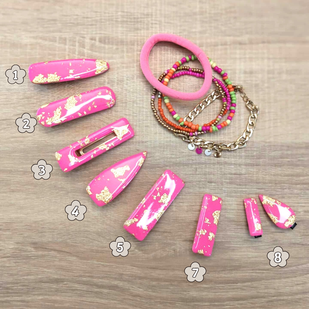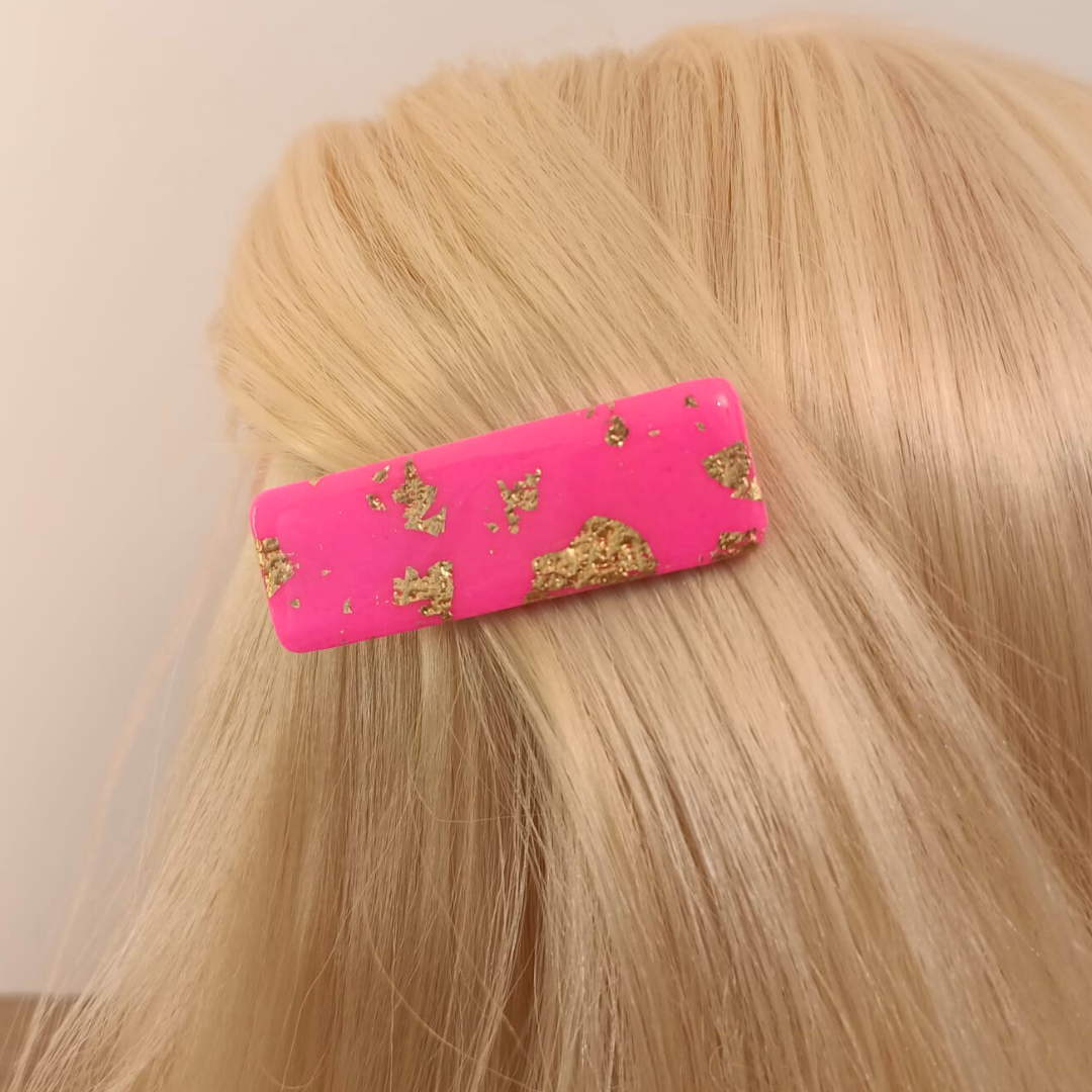 Barrette artisanale en pâte polymère rose et doré : Éclat et style pour vos coiffures