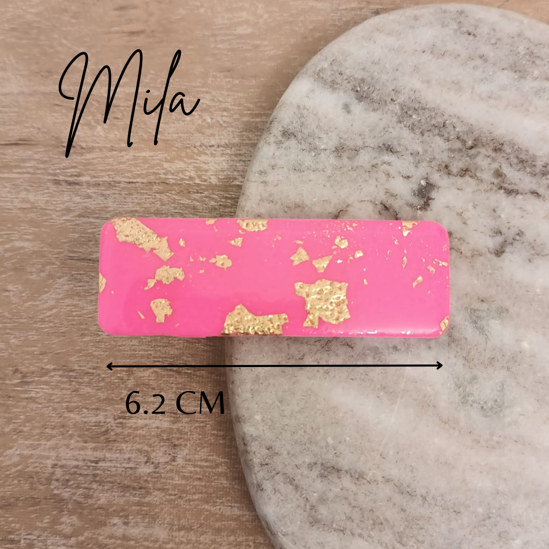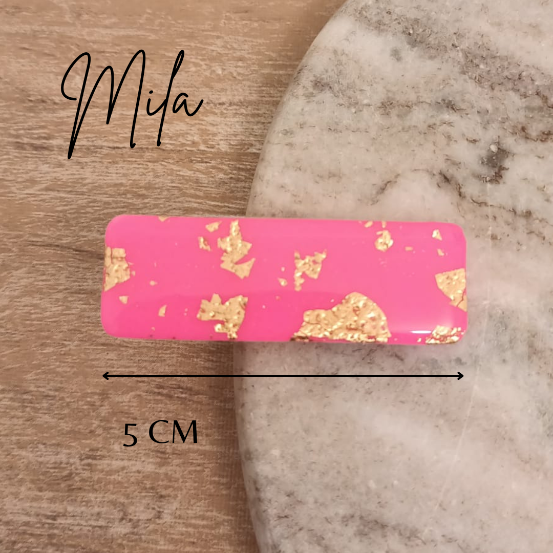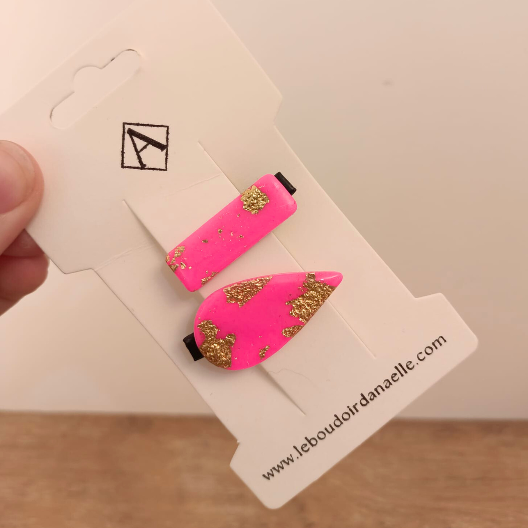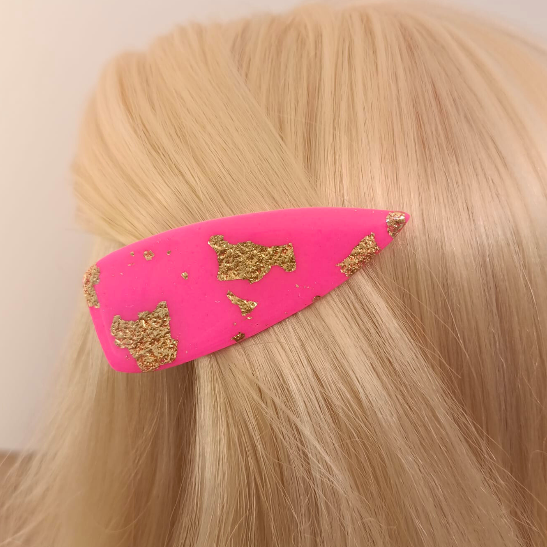 Barrette artisanale en pâte polymère rose et doré : Éclat et style pour vos coiffures