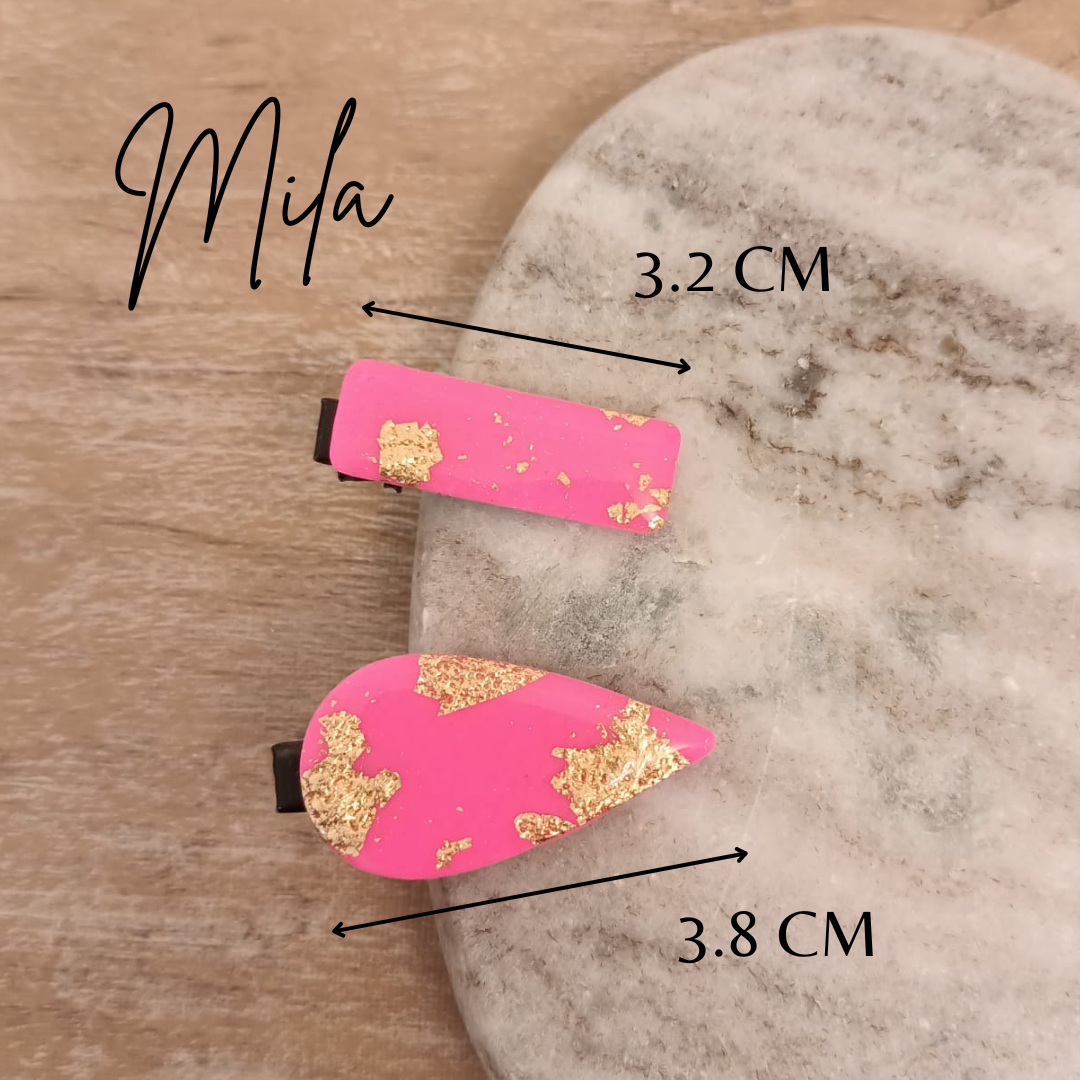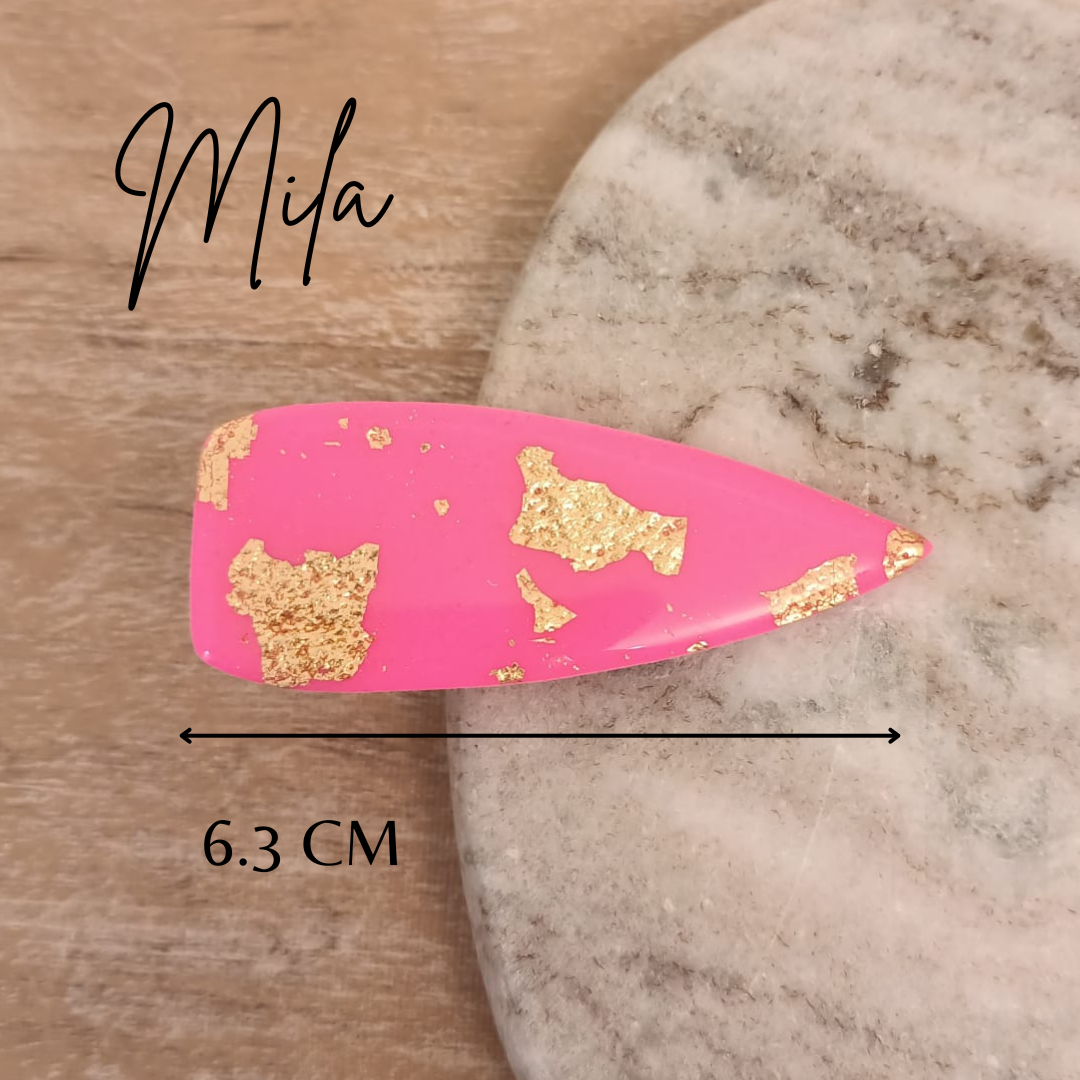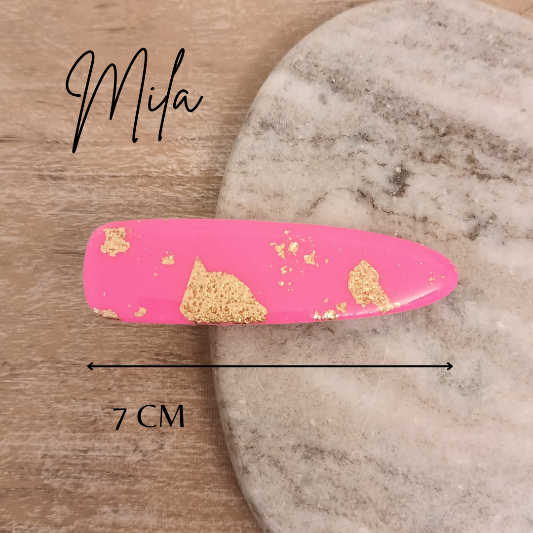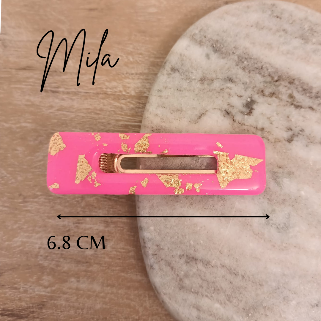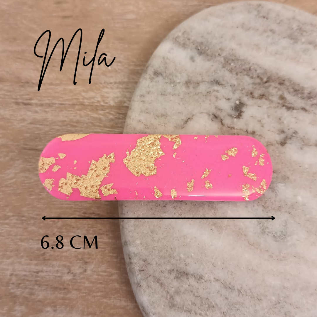 Barrette artisanale en pâte polymère rose et doré : Éclat et style pour vos coiffures