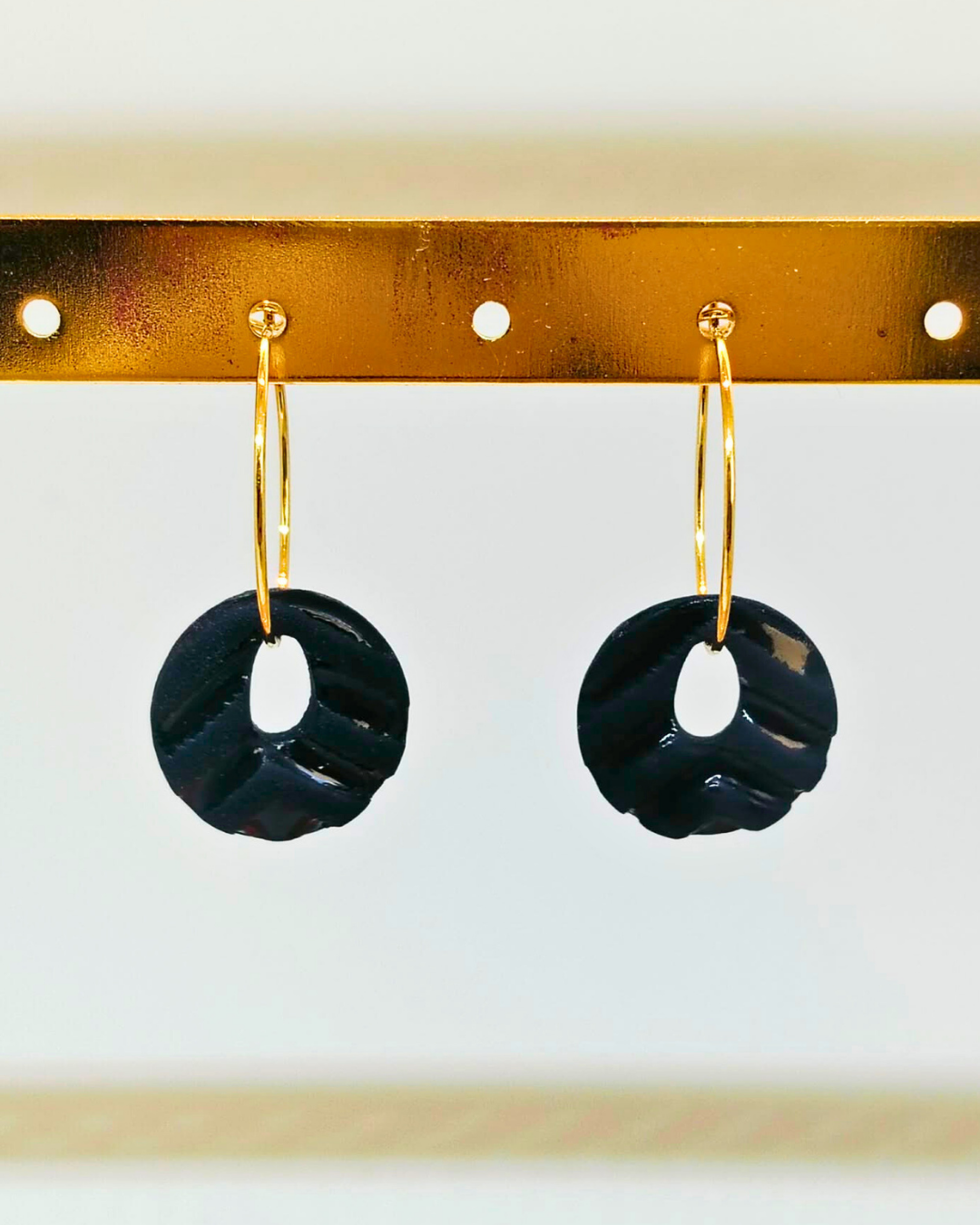 Craquez pour la discretion des créoles Sonia et ce joli mélange entre noir mat et brillant.