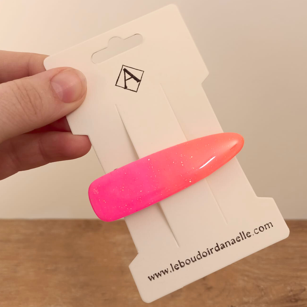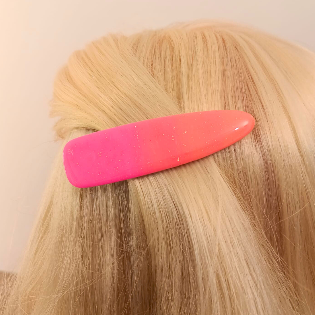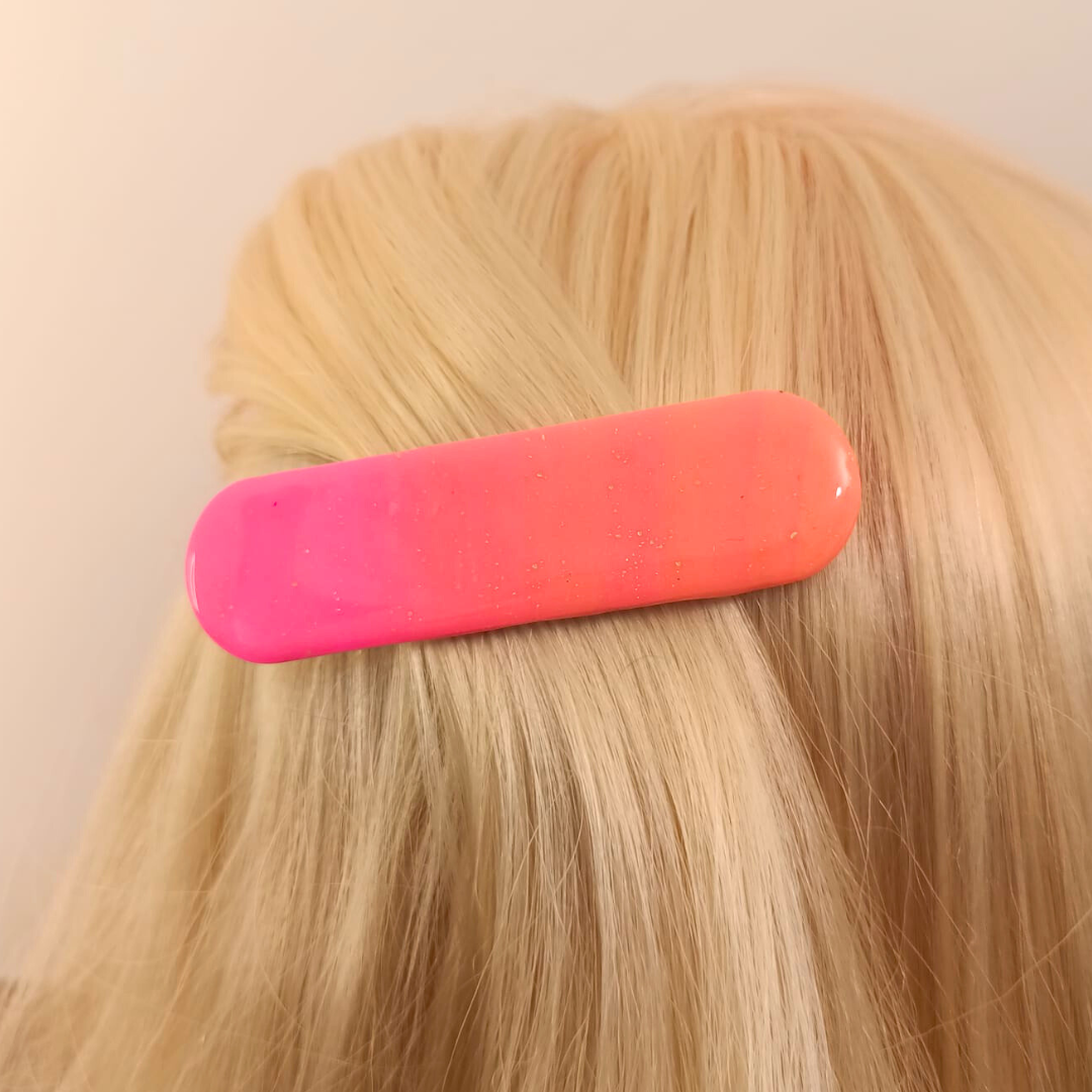 Découvrez l’Élégance Artisanale : La Barrette en Pâte Polymère rose et orange