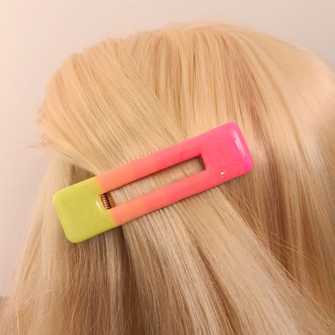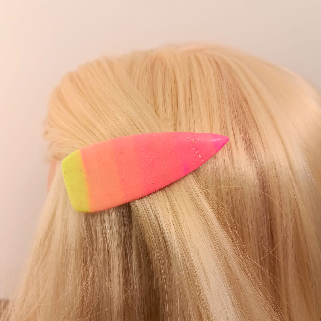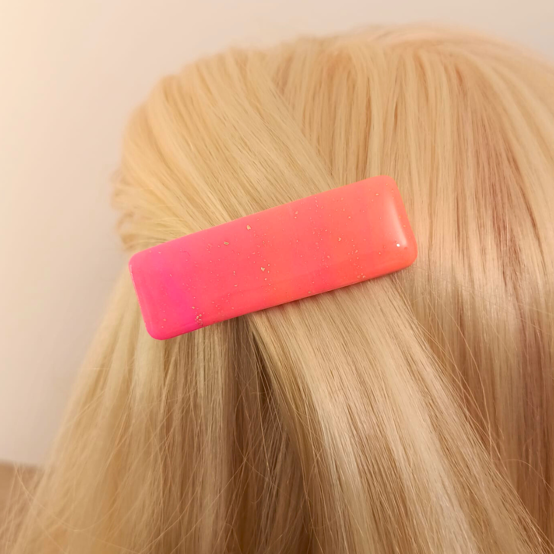 Découvrez l’Élégance Artisanale : La Barrette en Pâte Polymère rose et orange